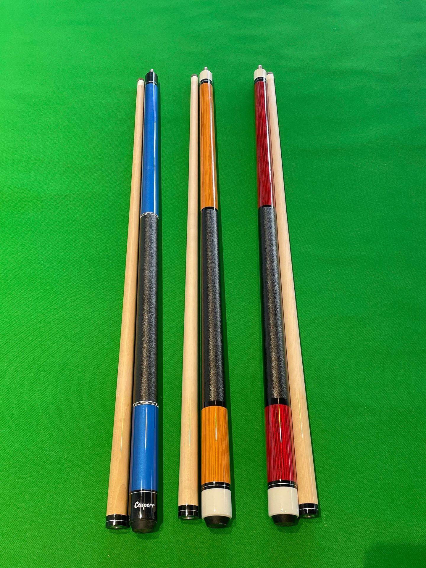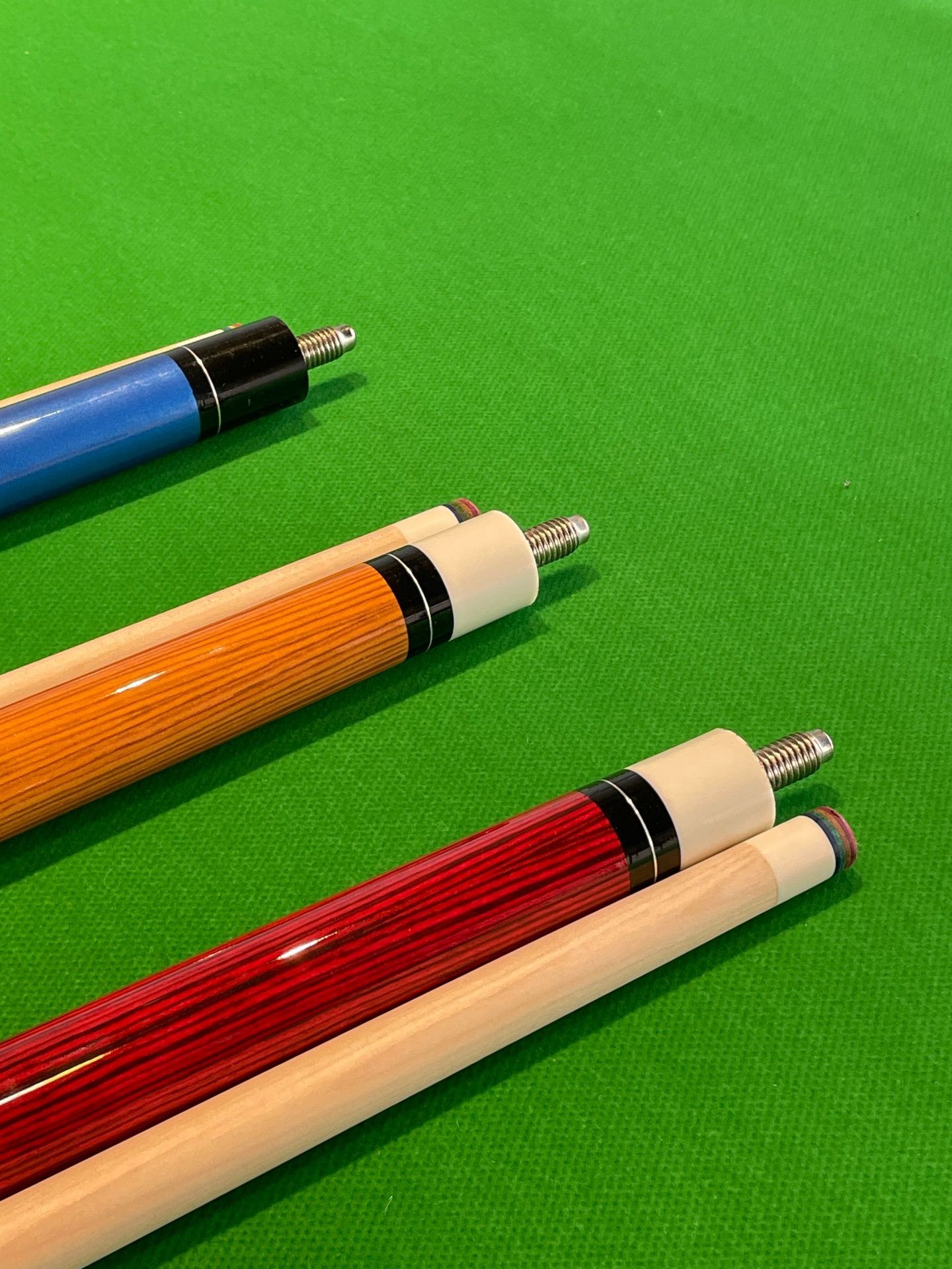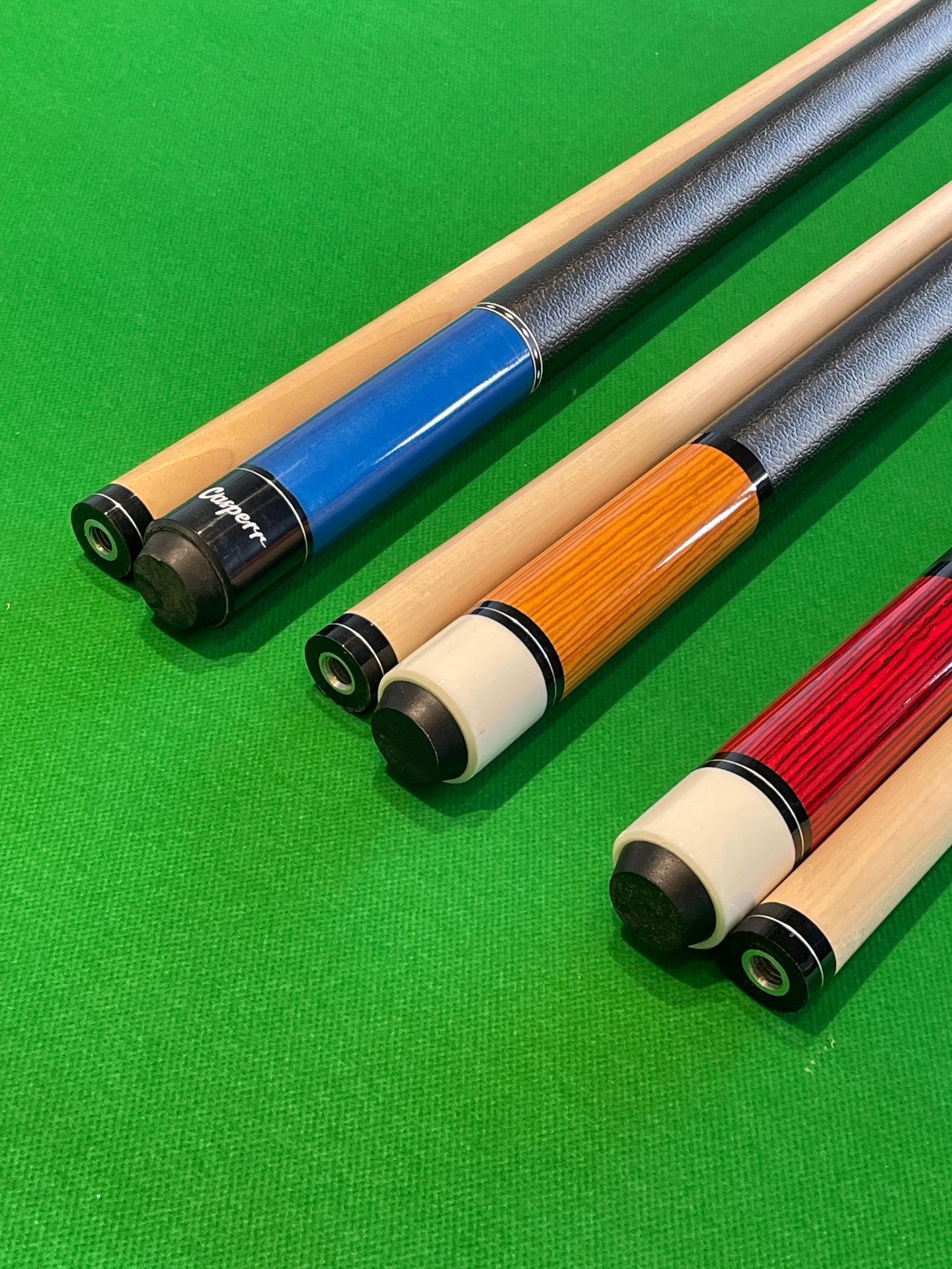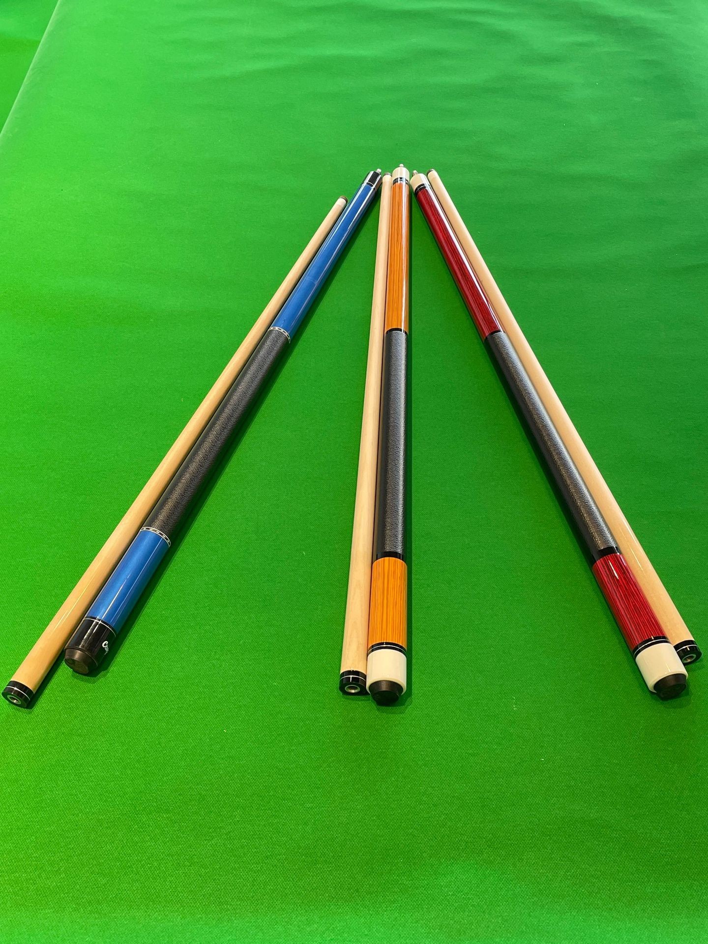 American cues and snooker cues in various styles available